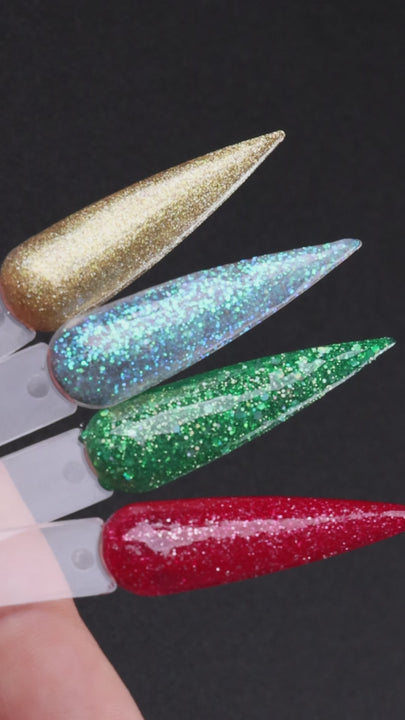 Get party-ready with our Festive Gel Polish Collection, featuring four sparkling shades from our Glitter range. This bundle brings together everything you need for the perfect seasonal manicure - from dazzling gold tones to frosty greens and icy whites.