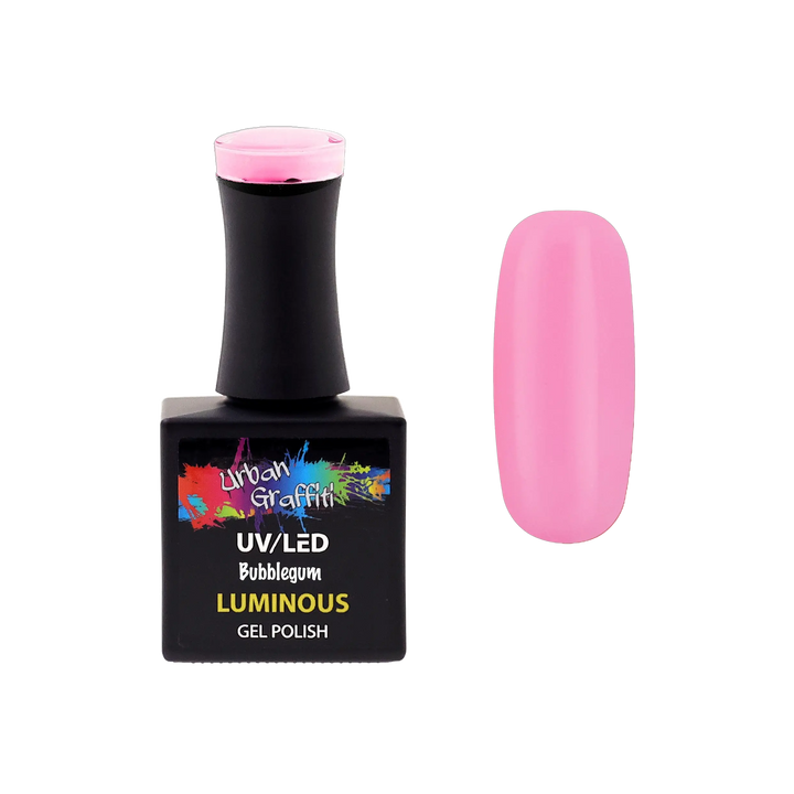 "Bubble gum - UGGP-F0489 15ml" from the luminous collection is a professional-grade nail polish that captures the playful and vibrant essence of classic bubble gum. This shade features a cheerful and bold pink hue, reminiscent of the sweet and nostalgic treat.