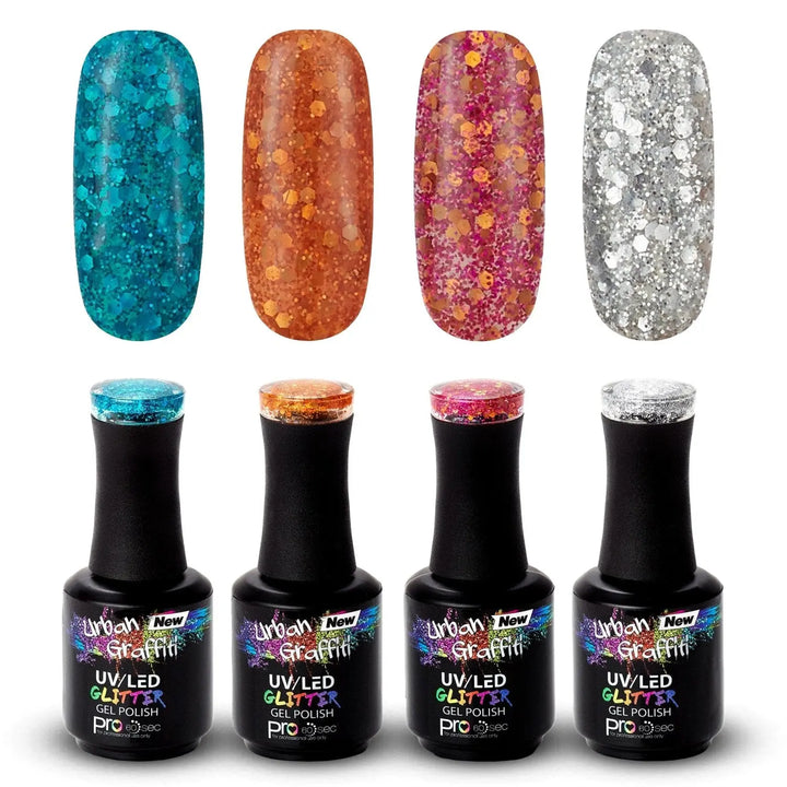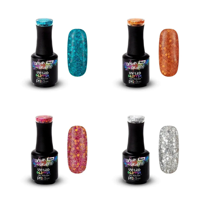 This collection is a selection of four of our favourite super chunky glitter gel polish. You will get a range of colours so you can add that much needed bling to just about any design!