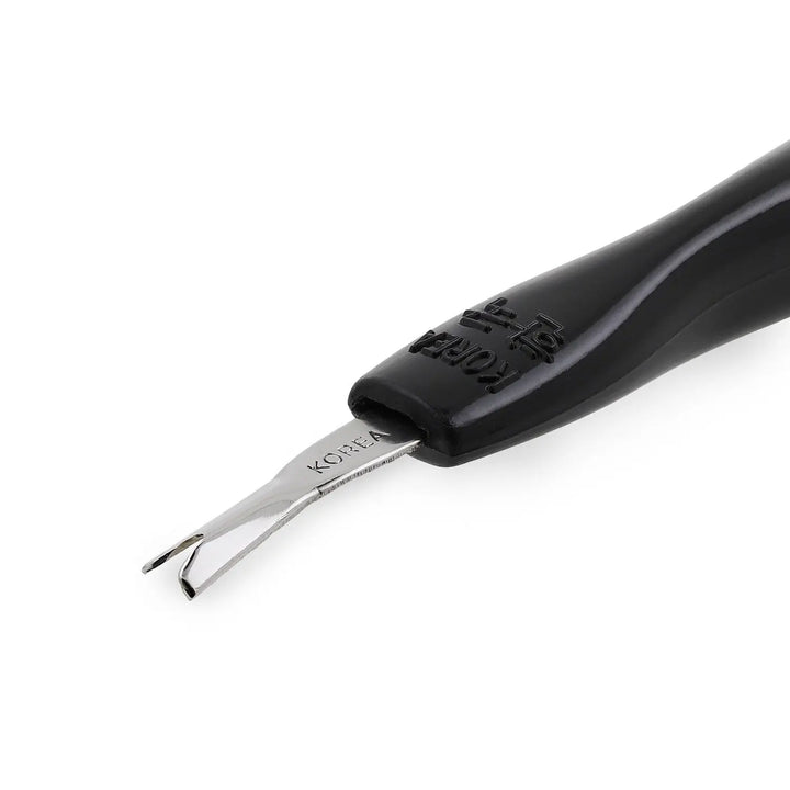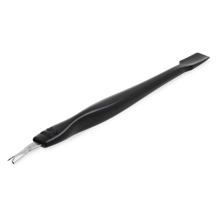 Manicure and Pedicure cuticle trimmer. Features the cuticle trimmer and a cuticle pusher on the other end. After pushing back the cuticles run the v-shapped blade along the cuticle to remove excess cuticle and hangnails. Very Easy to use.