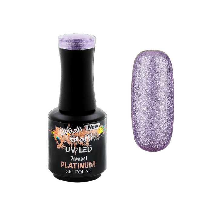 "Damsel Platinum - UGGP-P012" platin koleksiyonundan 15ml şişede, zarafet ve incelik yansıtmak için tasarlanmış sofistike bir jel oje.